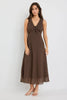 Timeless and playful, the infinity Dress from Among the Brave is a sleeveless bias-cut midi designed in a rich chocolate base with a classic polka dot print. The V-neckline is finished with a delicate tie detail for a feminine touch, while the bias cut drapes beautifully to flatter the figure. Fully lined for comfort, this dress is crafted from a breathable cotton-linen blend, making it an effortless choice for day-to night styling.