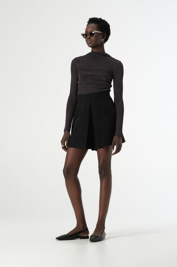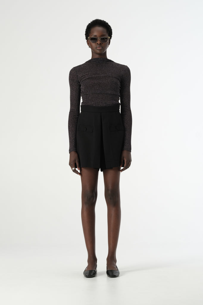 Elka CollectiveElevated for taking your outfitting from day to night, the Elm Top is a simple and understated statement top. Made of luxuriously soft and stretchy semi-sheer lurex mesh fabric, this long sleeve top is cut to a fitted silhouette with side seam gather detailing and a high mock neckline. As a lightweight layer, the Elm Top offers endless styling options - from tailored pants and jeans to flowing slip skirts and dresses. Add chrome accessories to bring your look together.
