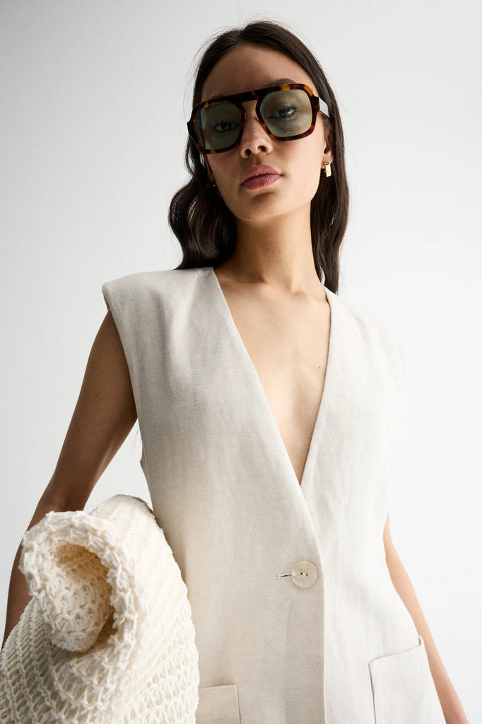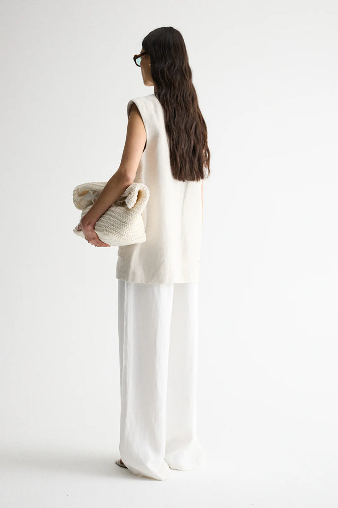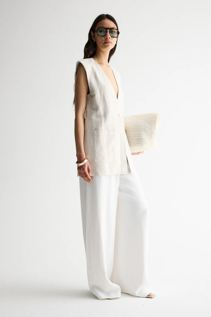 Elka CollectiveRefined yet elegant. Pieces like the Linna Vest embody two sides of a coin, incorporating our signature silhouettes with design features that prioritise comfort for simplified day to night outfitting. Made of a luxe rayon and linen blend fabric, this vest has a longline silhouette and loose drape with shoulder pads added for soft definition and a removable tie belt. A versatile piece for the season ahead, style with core denim for mid-week casual or elevate with tailored pants. For a coordinated look, style with the matching Linna Pant.