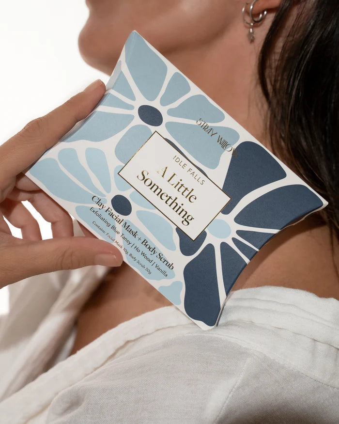 The Stray Willow Pocket Duo is a head to toe pocket sized pamper session! This Pocket Duo pairs our Blue Tansy Mask with a gentle buffing Body Scrub to refresh skin. With soothing botanicals, purifying clays, and a hint of Vanilla, it leaves skin smooth, clear and restored.