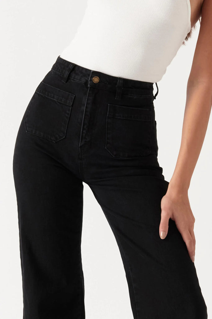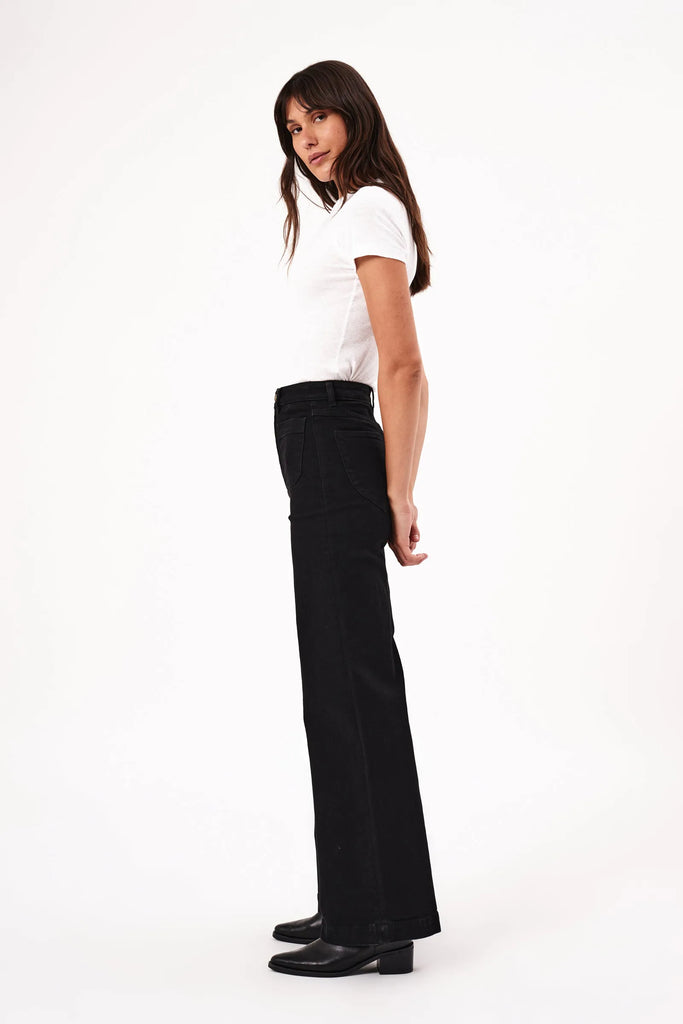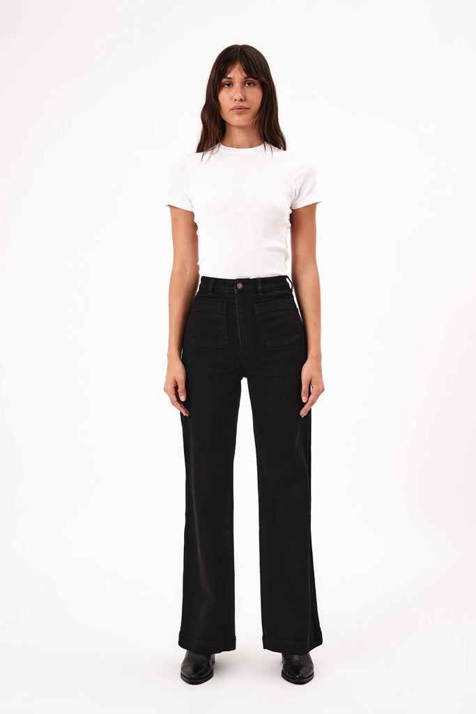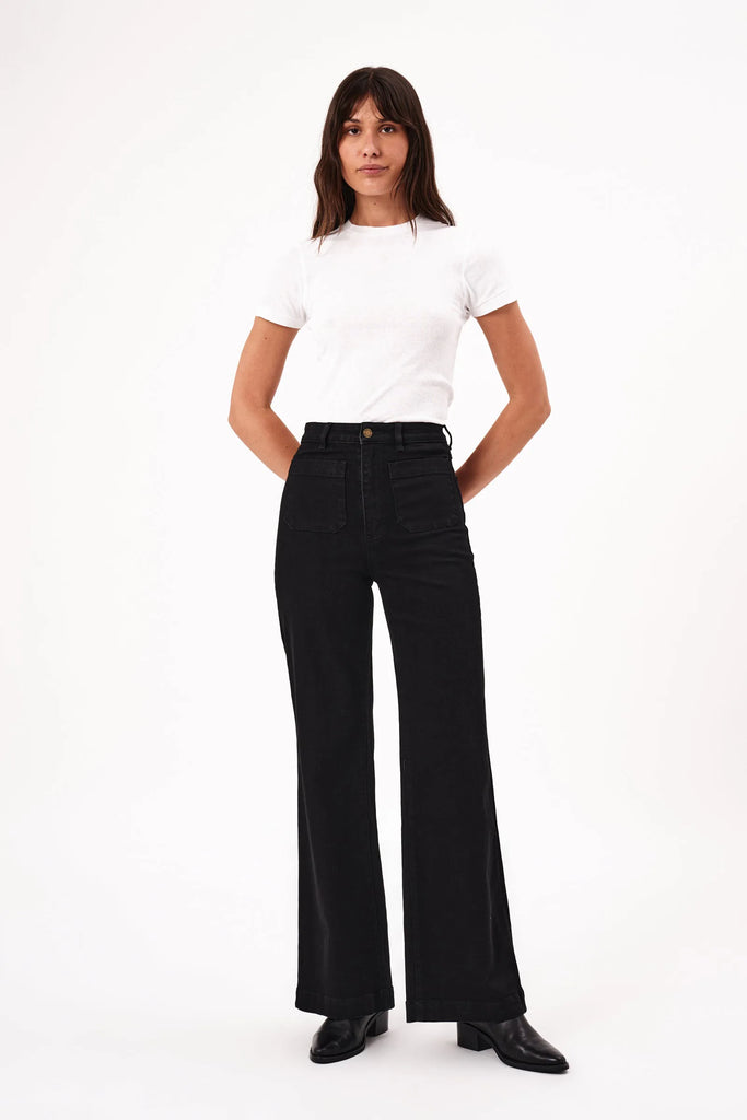 The Sailor Jean has a flattering high rise and front facing pockets. The leg profile opens out into a relaxed knee and wide hem.