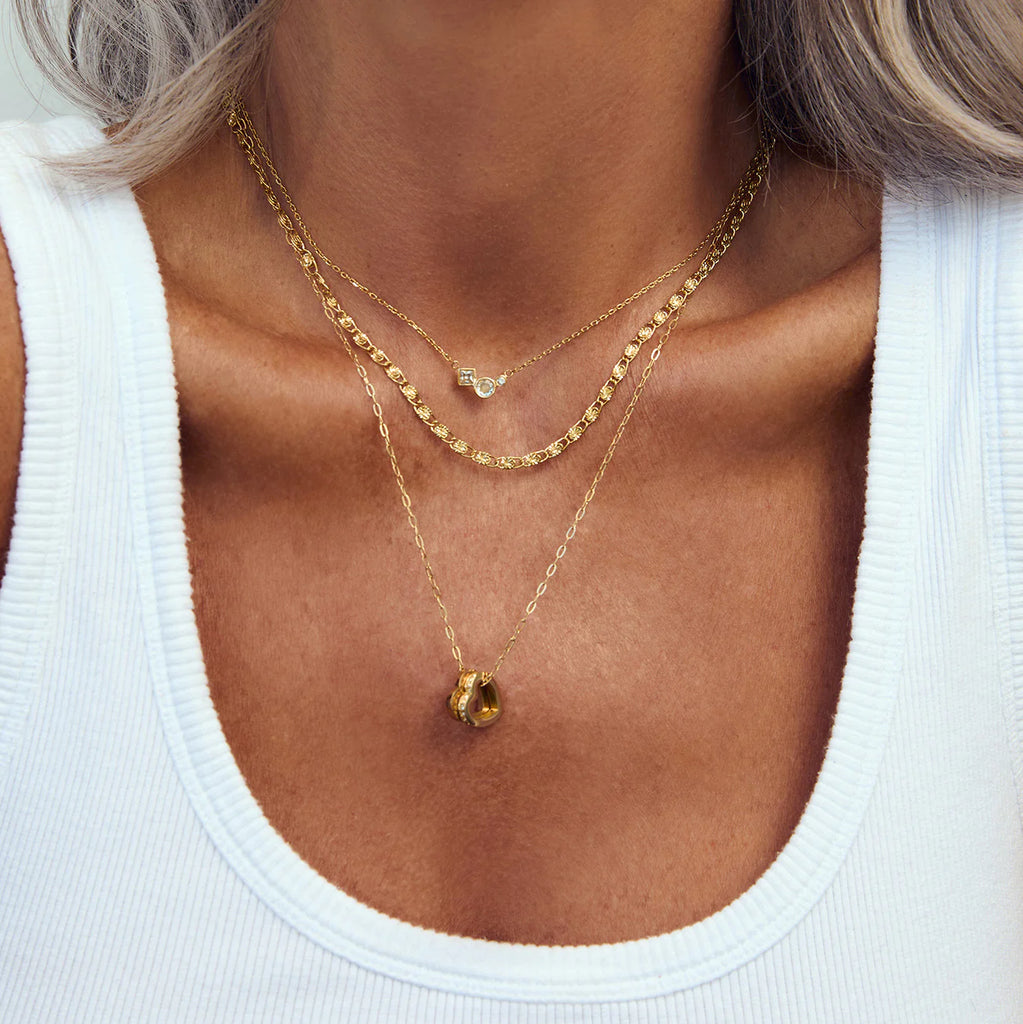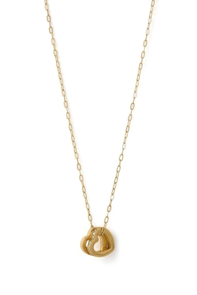 Arms of EveGive the gift of love with the beautiful Heart to Heart Necklace. This elegant piece features a fine gold chain adorned with two heart charms, one smooth and one stone, symbolising the beauty in contrast and connection. A meaningful gift to cherish, perfect for someone close to your heart.