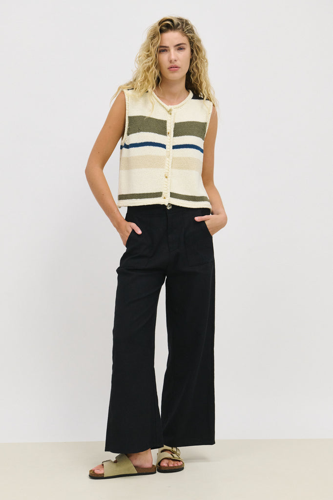 Little LiesThe Oaska Pant from Little Lies is based on their bestselling Jude Linen Pant but in a weightier, Autumn feel. They have a flat and flattering zip up front, with elastic at the back for comfort and ease of fit. Easily dress these up or keep it casual......these are going to be a definite wardrobe staple.