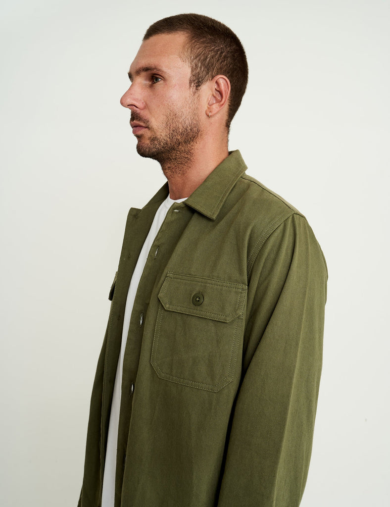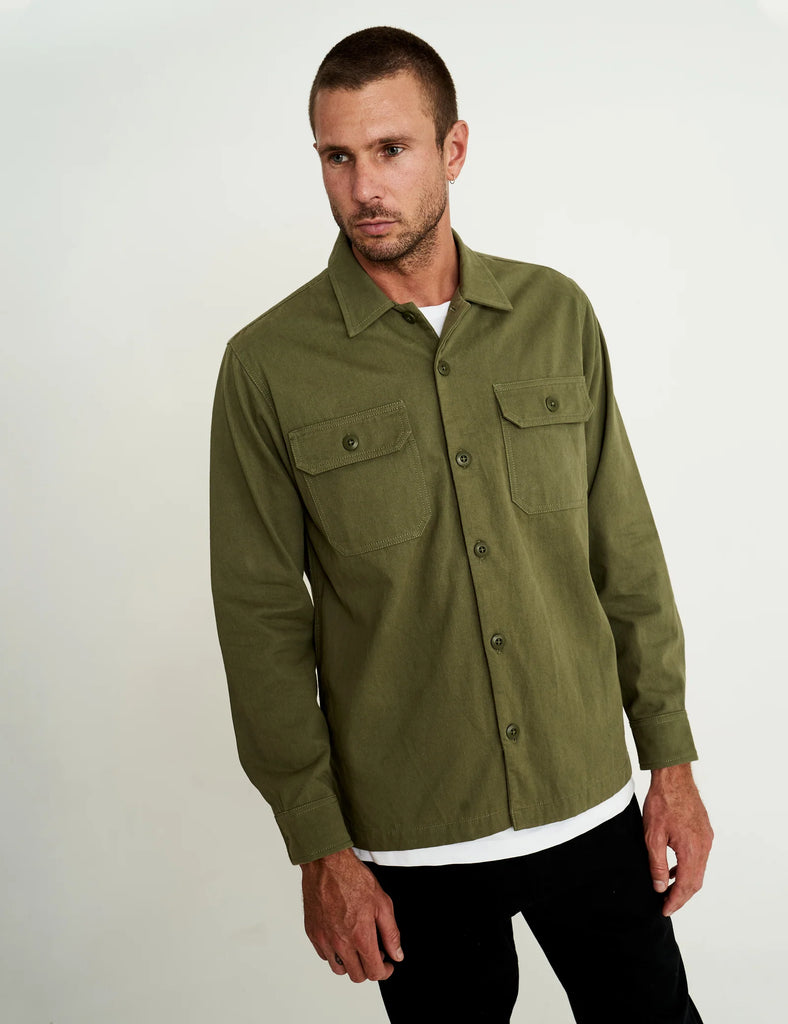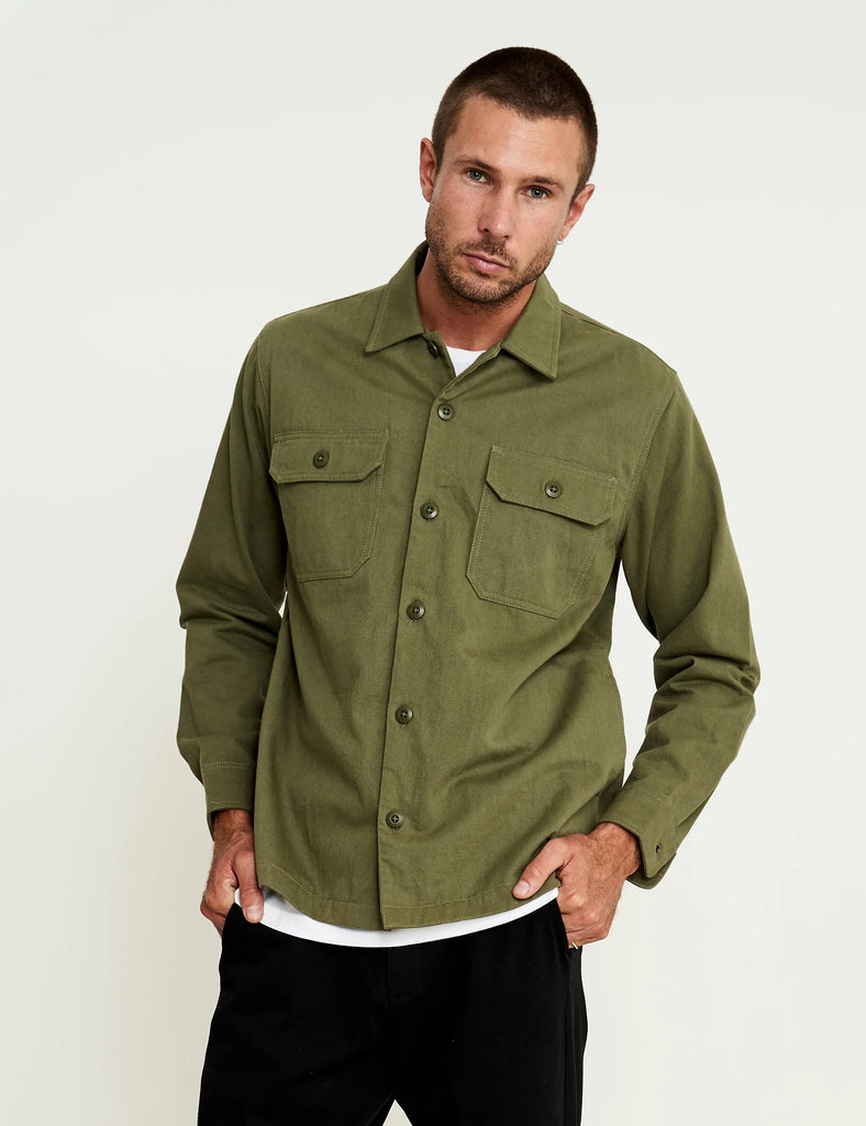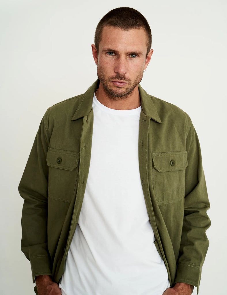 The Mr Simple Overshirt Shirt is made from a thick cotton twill that has been washed & softened for superior comfort. Channeling an army shirt from the 60's there has only been a few made so make this iconic staple a piece for your wardrobe for a long time to come.