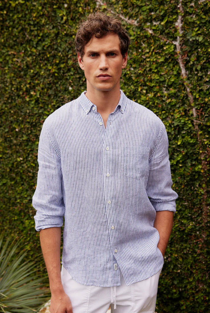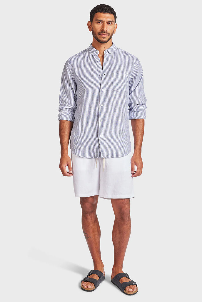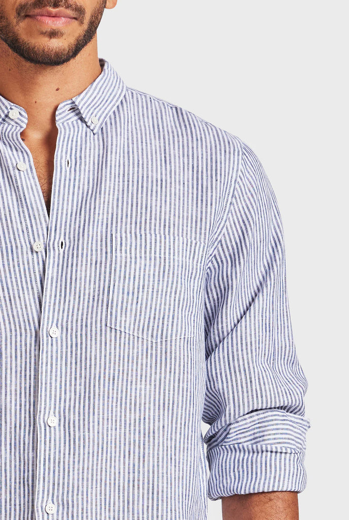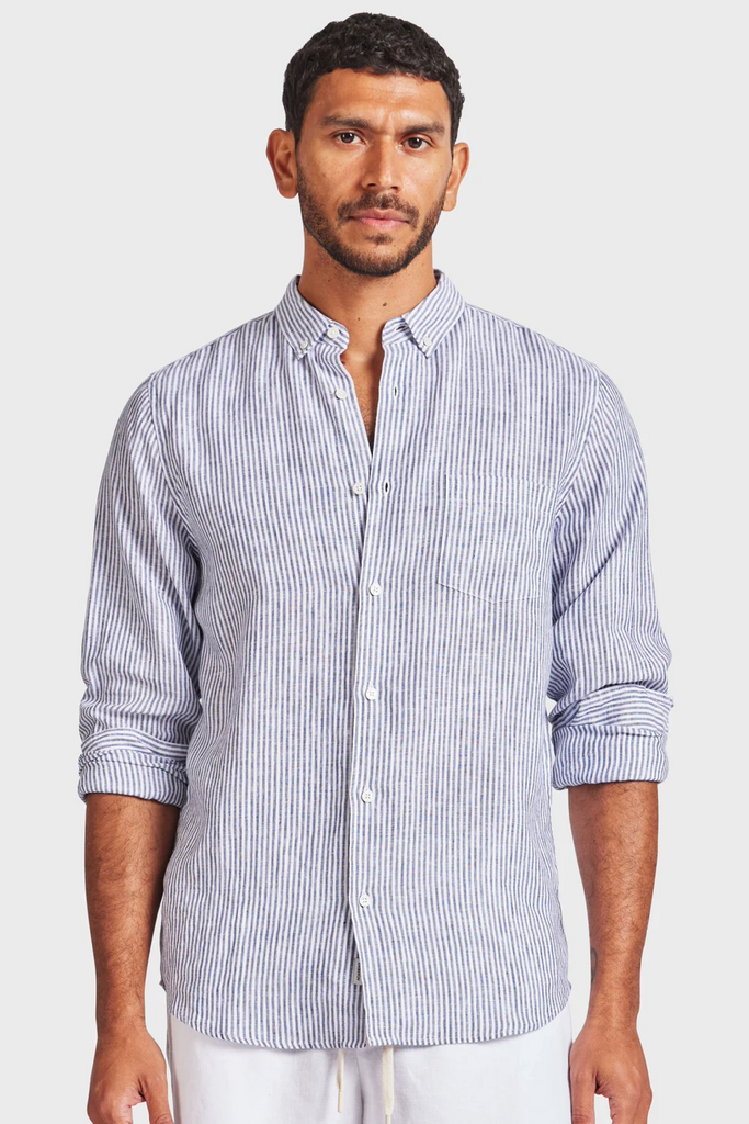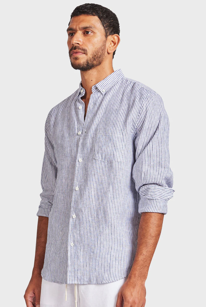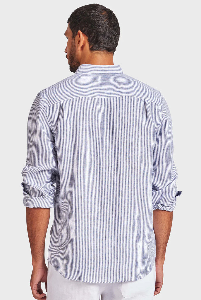 Rory L/S Linen Shirt - Navy Stripe