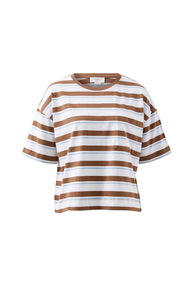 Boa Boxy Pocket Tee - White/Choc Stripe