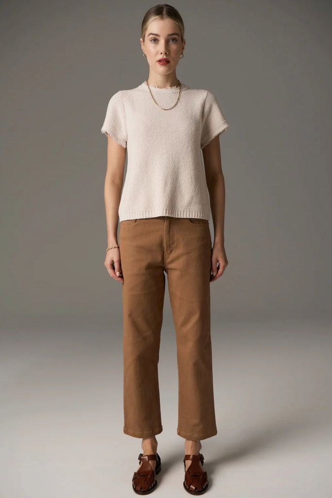 P O LThe Nara Fringe Tee is a slightly more structured take on a knit tee, finished with fringe detailing.