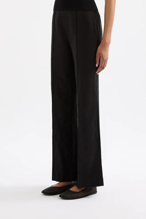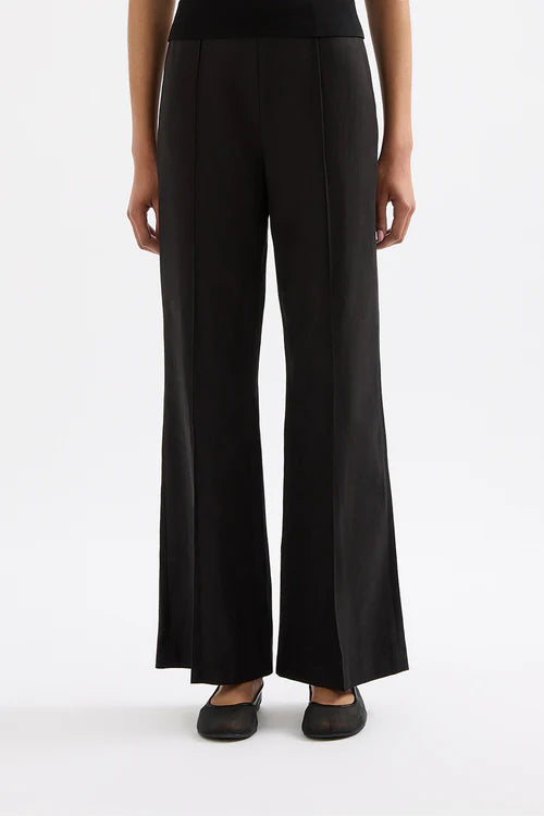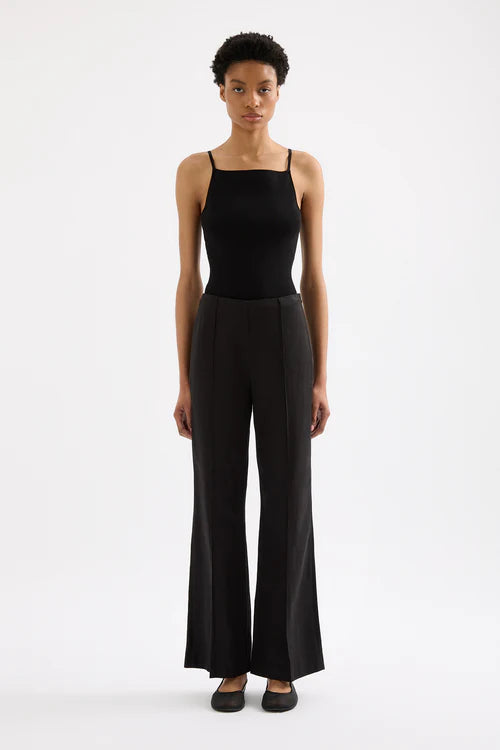 The Tait Pant is made from a mid weight Tencel/cotton fabrication which has a textured hand feel. The silhouette is tailored with a high waisted pant. slim on the thigh and wider at the hem. Features include pin stitch on front leg and side seam zipper.
