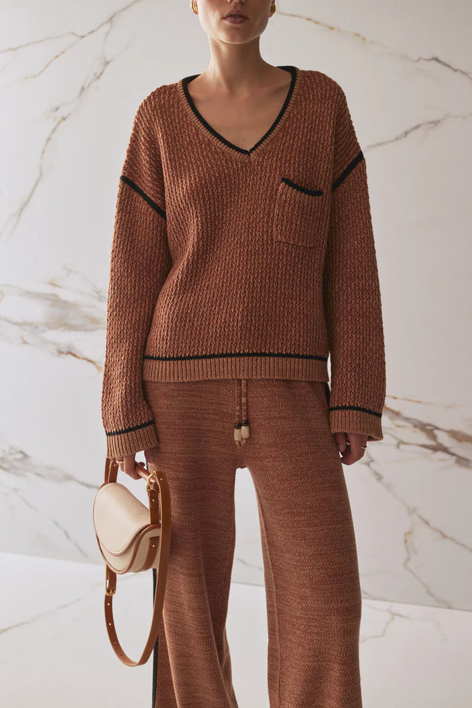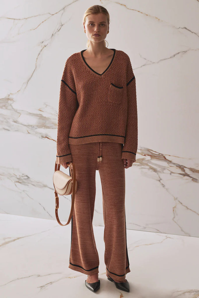 SanciaThe Inka Knit Jumper is both cosy and chic. This jumper will be a must for your wardrobe with the ability to rotate through wear year after year. Featuring a beautiful wool fibre in a gorgeous marle, feminine flared sleeves and relaxed fit. Pair with the matching Tommy Knit Pants for a matching set.