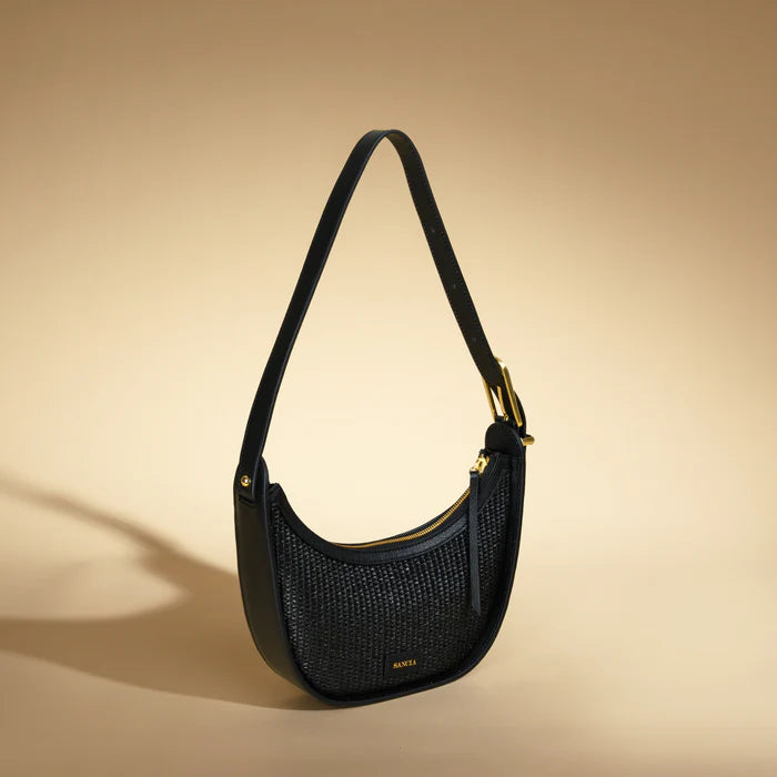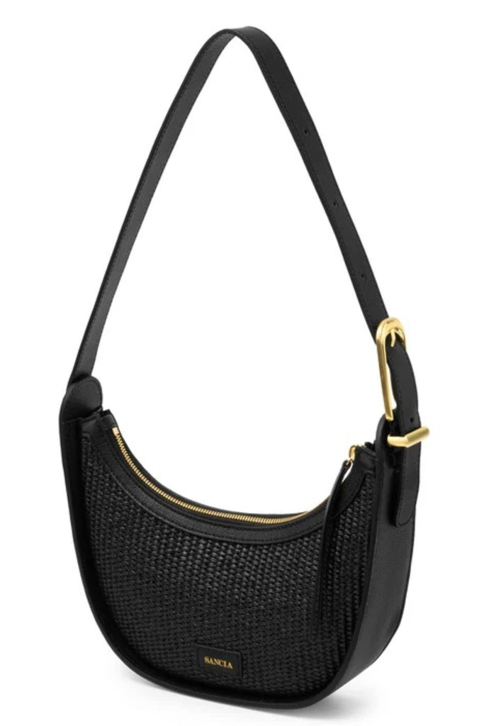 SanciaThe Luna is a crowd favourite shape reimagined in Raffia. The halfmoon shape in this new to Sancia material is a stylish and directional piece that will suit every outfit. The iconic shape has a soft body that uses a simple zip closure. The strap is fully adjustable with a buckle and bar feature.