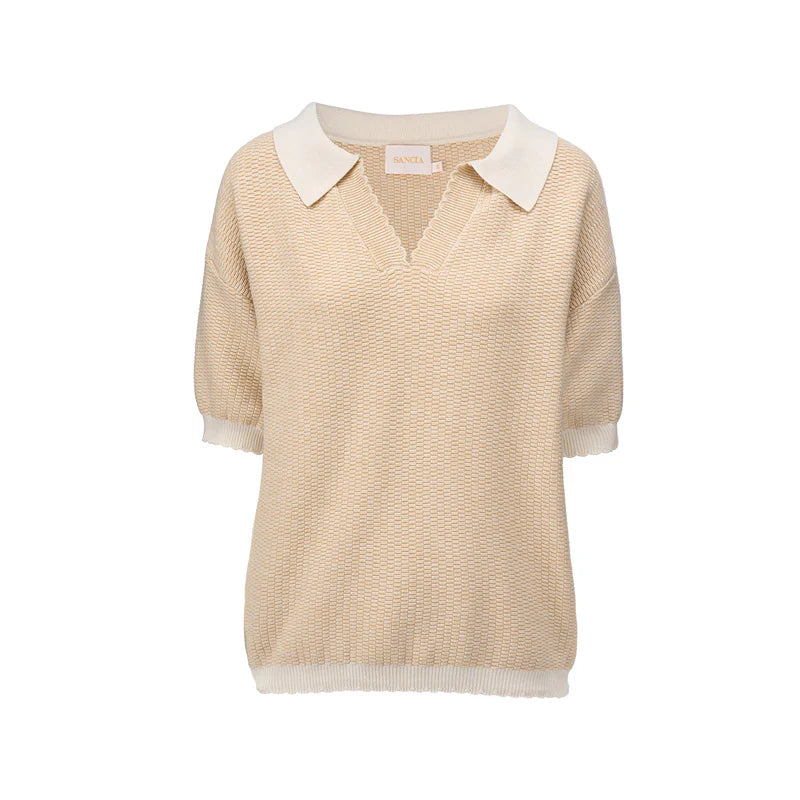 SanciaThe Nola Knit Top is a beautifully made staple featuring an elegant polo collared neckline, a deep V-neckline, oversized short sleeves and scalloped detail along the hem. The soft boxy garment is crafted from 100% cotton yarn. Wear with the Tawny Knit Pants for a co-ordinated set.