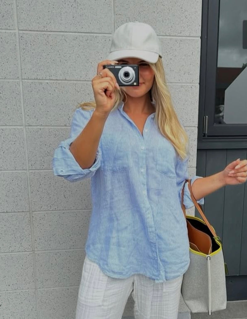 Boyfriend Linen Shirt - Baby Blue Stripe