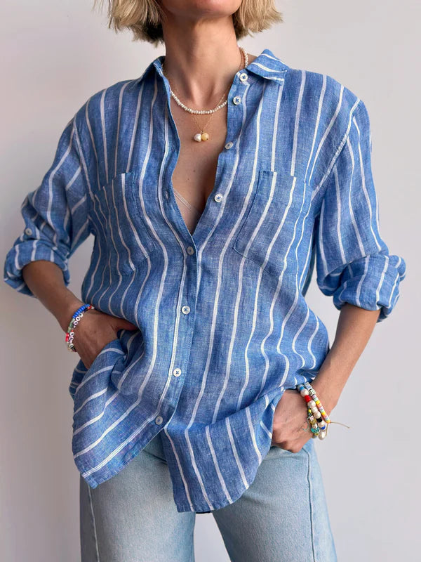 Boyfriend Linen Shirt - Marine Blue Stripe