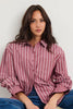 Stories be ToldThis classic striped button-up shirt is all about effortless sophistication.The chocolate and white pinstripes add a modern edge. The lightweight fabric keeps things breezy and comfortable. Worn loose over a tank or tucked into high-waisted jeans or trousers, this shirt is a must have for laid-back yet polished dressing.