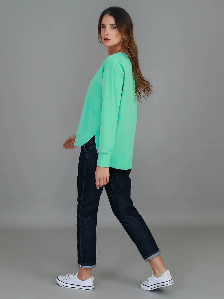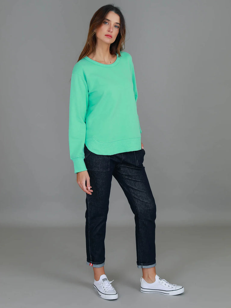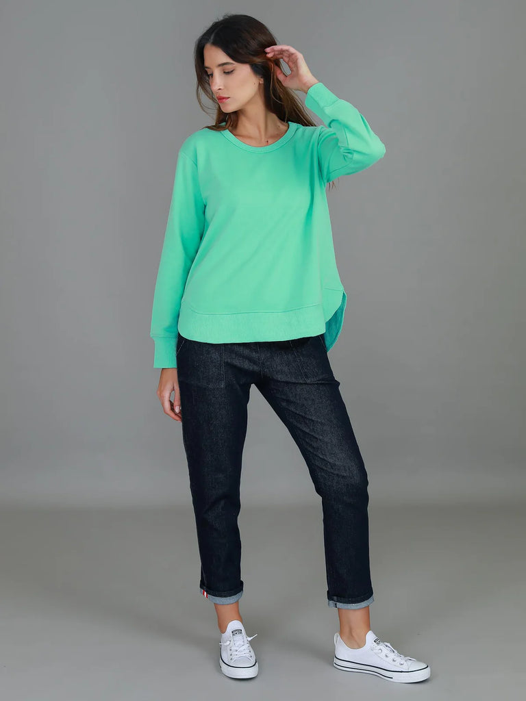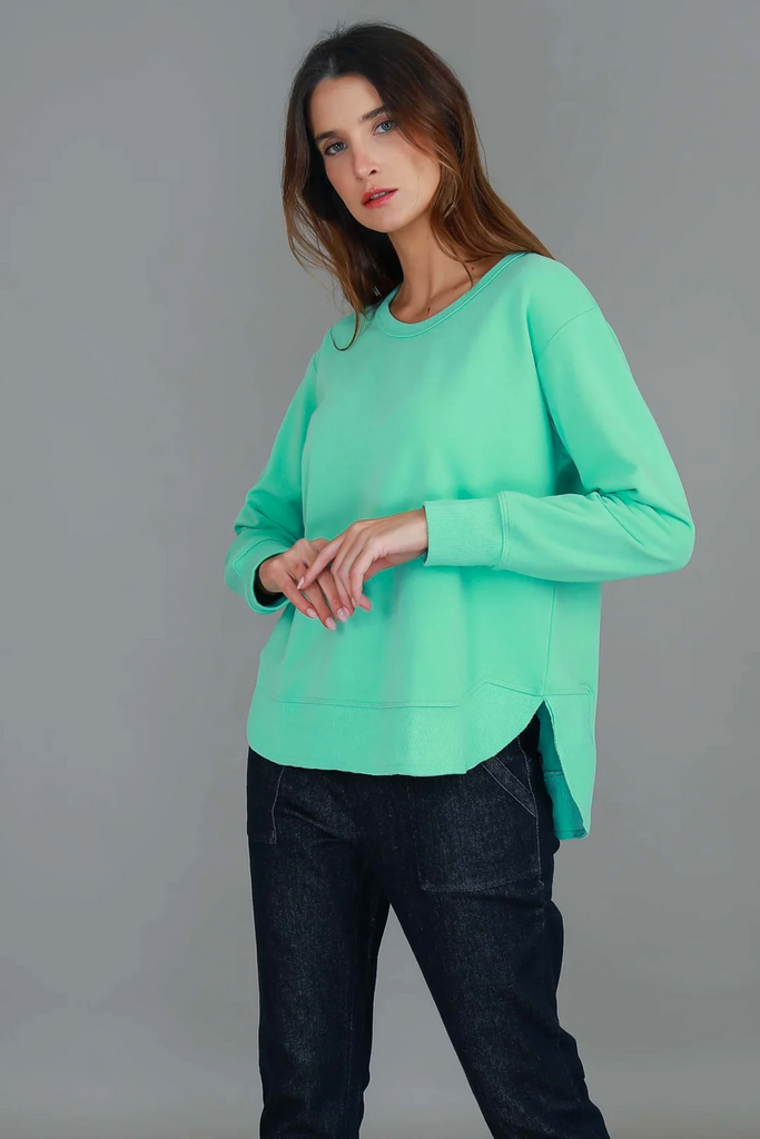 Third Story the LabelThe Charlotte Curve Hem Sweater is a fresh twist on a wardrobe staple - soft, stylish and made for easy layering. Crafted in a stretch French Terry, this mid-weight sweatshirt features a classic crew neckline Slouchy and a flattering curved hemline that adds a subtle feminine shape.