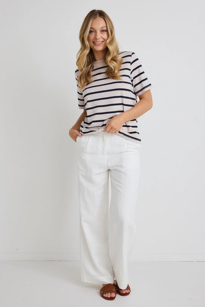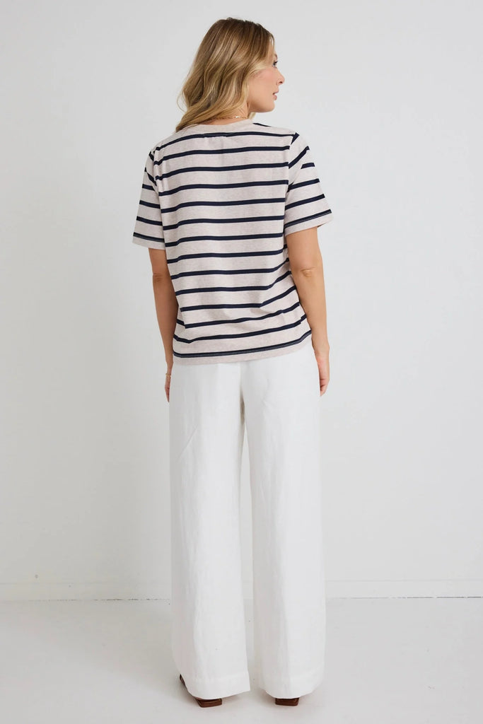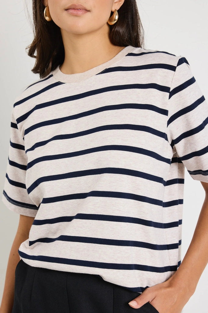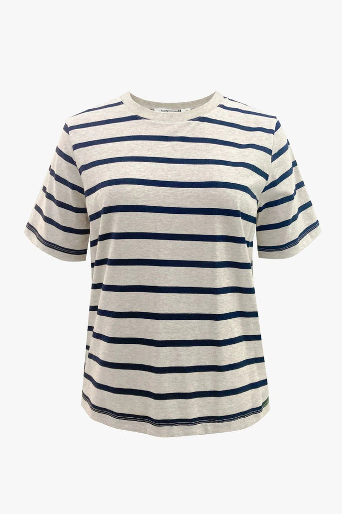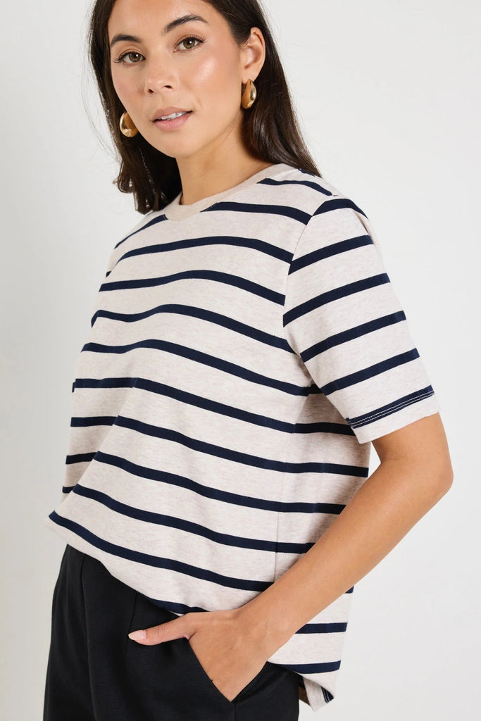 Binding Stripe Boxy Fit Tee - Ecru Navy
