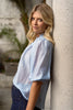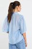 Ivy & JackStart your day in our Closure Pale Blue Top. This top features a high neck with frill detailing and button front, complete with mid length balloon sleeves. This semi sheer linen blend provides a breathable, comfortable wear perfect for any occasion.