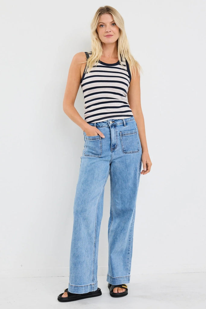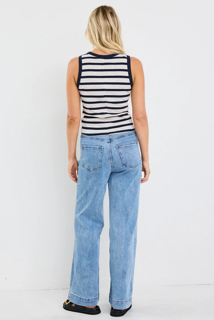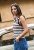 Re:Union LabelThe Cobble ribbed tank is crafted from a soft and breathable cotton with a touch of stretch. The tank features a bold navy and natural stripe design and is the perfect addition to your wardrobe.