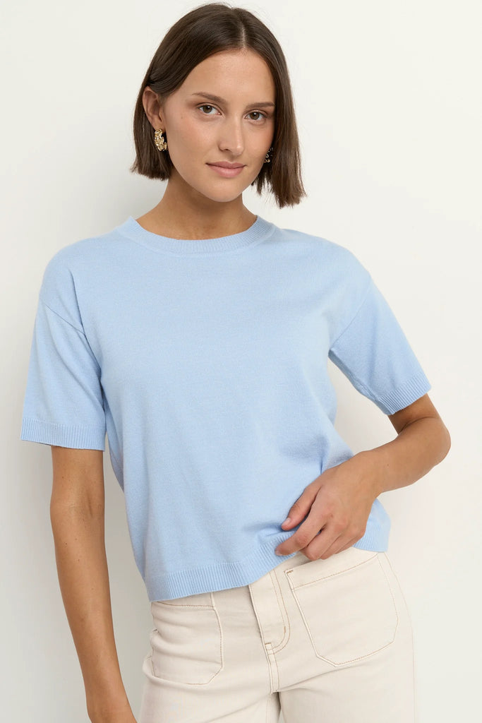 Among the BraveThe Precise Tee is sky blue is all about soft polished clean lines, a classic crew neck, and a dreamy lightweight knit that drapes just right. It feels silky to the touch with a delicate finish that's perfect for layering or letting it shine solo. A must-have staple with just enough stretch to keep things comfy, flattering and effortless.