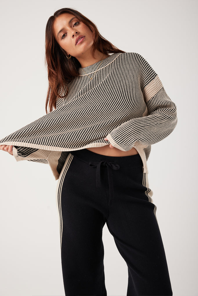 ArcaaThe Josie Sweater in Graphite looks even better when teamed with the Emery Pants in Black and Ecru. Leisurewear at its best!