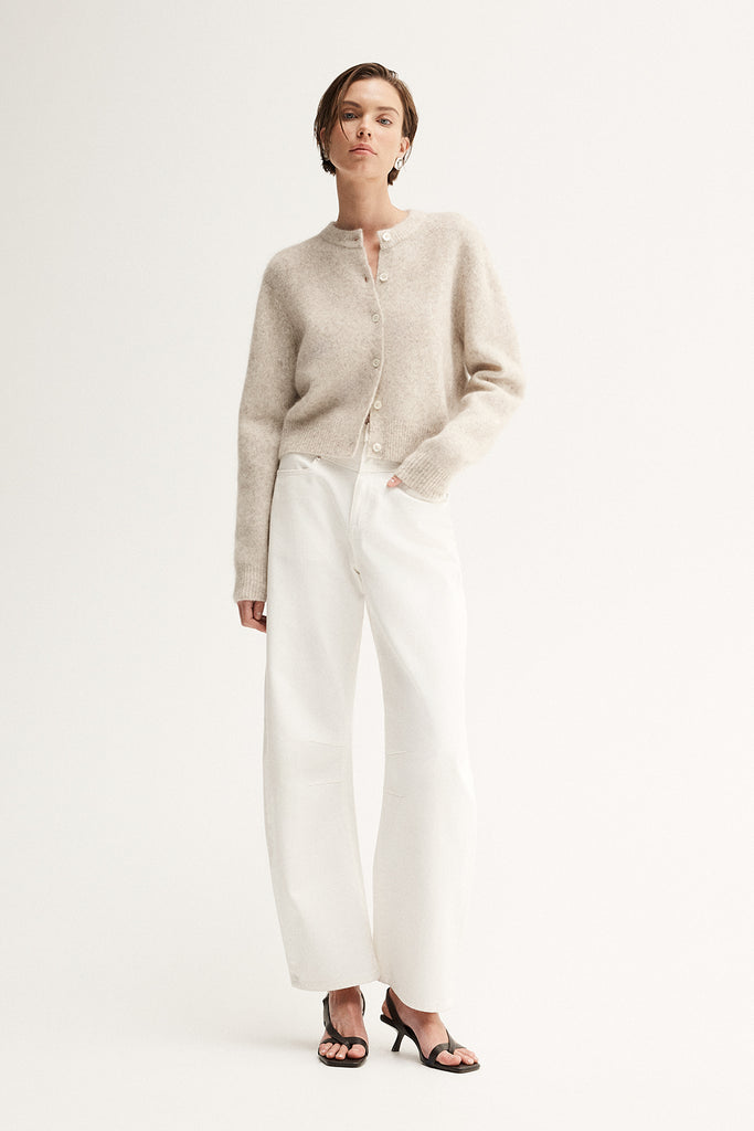 Elka CollectiveThe Abigail Cardigan is made of a luxe wool blend knit with mohair for. a soft and rich texture throughout. Cut to a cropped length with buttons through front and drop shoulders, this cardigan becomes a go-to for low risk, high reward outfitting. Styled with staple denim, this knitwear essential weaves comfort and warmth into day and night looks.