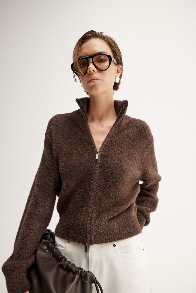 Elka CollectiveAn elevated essential for transitional outfitting, the Leon Knit Cardigan features a rich, plush texture and a refined silhoutte. Designed with a high collar and a versatile two-way zip-through front, this knit offers a modern, sporty edge to classic layering. Cut to a cropped length with relaxed sleeves, this cardigan becomes a go-to for low risk, high reward outfitting. Styled with staple denim, this knitwear essential weaves comfort and warmth.