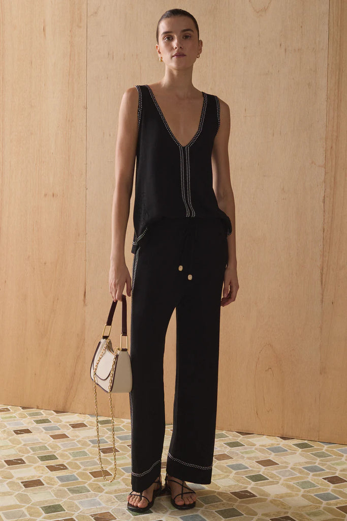 SanciaThere are a few pieces that belong in every closet and a lightweight knit set is on that list. The Skye Knit Top is made with a silky soft Lyocell and features a subtle palm leaf punch-hole design and dotted border detail. Wear with the Milani Knit Shorts or Lawrence Knit Pants to complete the look.