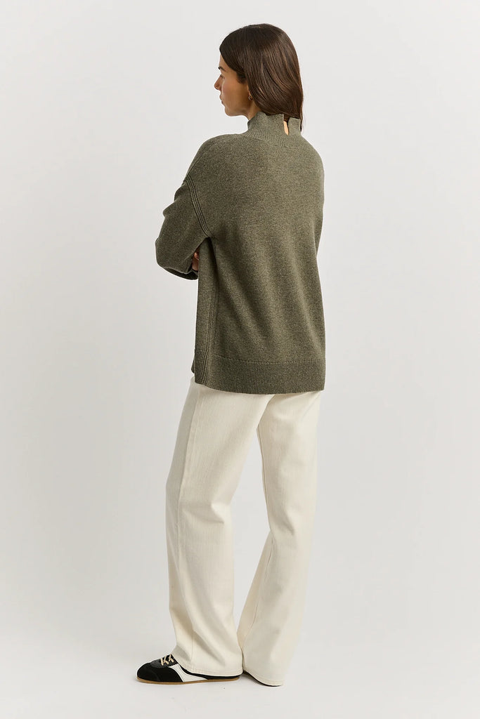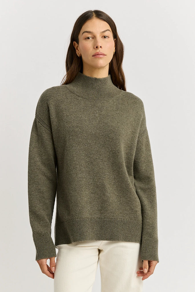 ToorallieMade from Australian Merino Lambswool, the Split Neck Funnel Jumper features a tall, rib standing collar detailed with a small split at the back. The relaxed fit is finished with a drop shoulder and a rib trim. It boasts a durable warmth and comfort wearability.